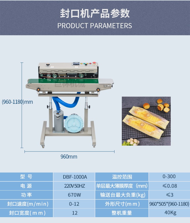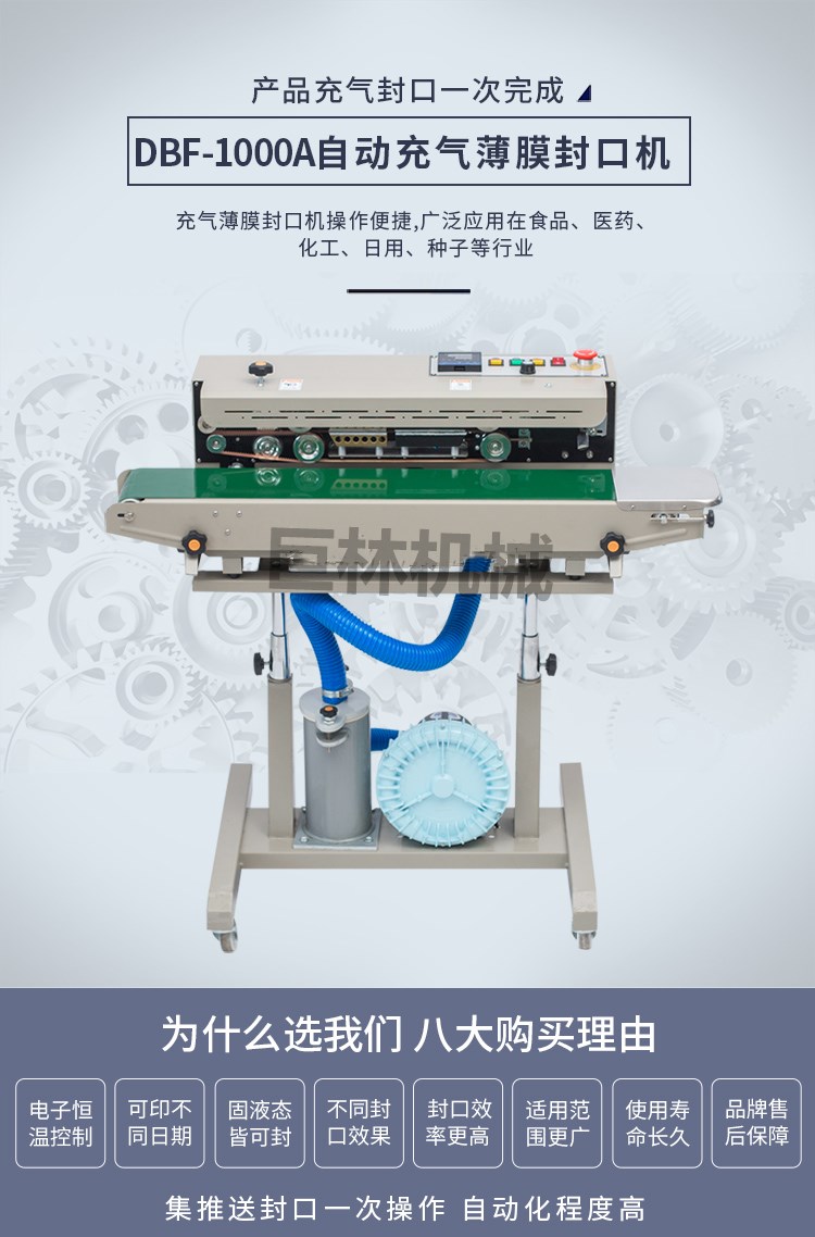 名 稱: | 自動充氣薄膜封口機 | 型 號: | DBF-1000 |